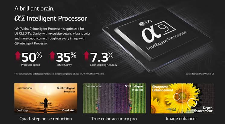 LG juga memperkenalkan prosesor dengan kecerdasan buatan bernama α (Alpha) 9 Gen 3. Prosesor α (Alpha) 9 Gen 3 ini dilengkapi fitur AI Picture Pro yang mampu mengenali wajah dan teks pada layar.