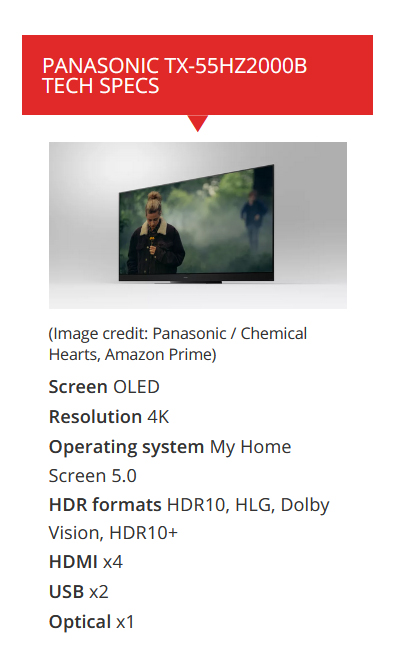 Selain memiliki speaker tambahan tersebut, HZ2000 berbeda dari saudara kandungnya, seperti HZ1000 yang sangat baik, melalui penggunaan panel Edisi Profesional. Panasonic tidak menawarkan banyak detail tentang perbedaan antara panel Edisi standar dan Profesional, tetapi ini adalah panel khusus (disediakan, seperti semua panel OLED, oleh LG) yang melalui penyetelan ekstra oleh para insinyur Panasonic, menghasilkan gambar yang lebih cerah daripada biasanya tersedia dari TV OLED.