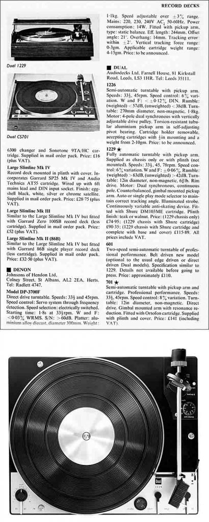 Andalan dari kisaran awal 70-an darinya adalah 1229, yang punya dek penggerak tiga kecepatan yang serupa dalam banyak hal dengan model yang dibuat merek BSR dan Garrard pada saat itu, hanya jauh lebih baik direkayasa. Motor sinkron dan piringan ukuran penuh (12 inci)nya membedakan 1229 dari banyak model saat itu, dan rupanya dapat terjual dengan baik, meskipun harganya relatif tinggi sekitar £115 dengan alas, penutup, dan kartrid Shure DM103.