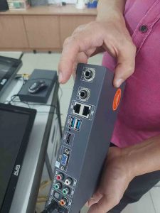 Untuk slave, dia akan ditempatkan di setiap ruang karaoke yang ada. Jadi setiap ruang akan punya satu slave dan juga satu monitor sentuh untuk karaoke. Sampai berapa ruang? Menurut Sulianto total alat ini bisa digunakan untuk 25-30 ruangan karaoke.