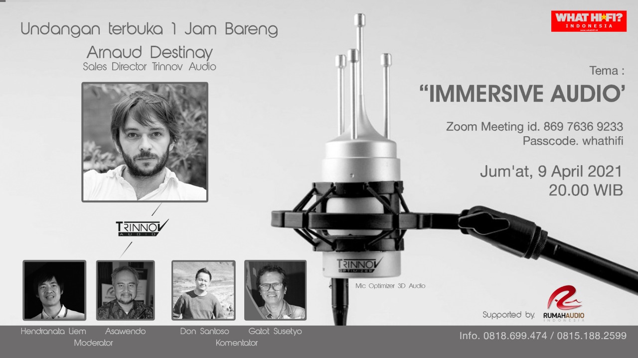 Arnaud Destinay, sales director Trinnov Audio memberitahukan banyak hal tentang immersive audio melalui sebuah acara zoom IHEAC Corner, 9 April 2021 lalu. Bagaimana Arnaud menggambarkan immersive audio itu? Imersive audio erat kaitannya dengan audio 3 dimensi. Dan dalam kehidupan sehari hari kita sesungguhnya sangat familiar dengan nuansa 3 dimensi. Bahkan ketika perhatian kita tengah tertuju…